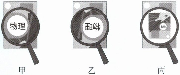 小明一直认为,放大镜把书上的字放大后都是正立的。但小聪告诉他,放大镜离书远一点,字还能倒立呢!她还演示给小明看,让放大镜从贴着课本开始慢慢地远离课本,先后看到了右面甲、乙、丙三图中的情况。这是怎么回事?透镜与物体之间的距离(物距)是怎样影响像的正倒、虚实和大小的呢?