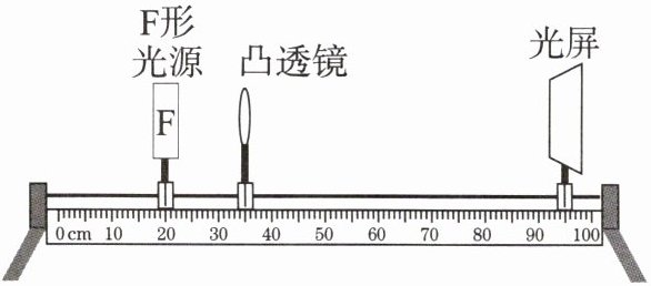 (2)按照如图所示组装实验器材,调节F形光源、透镜和光屏,使它们的中心高度相同。