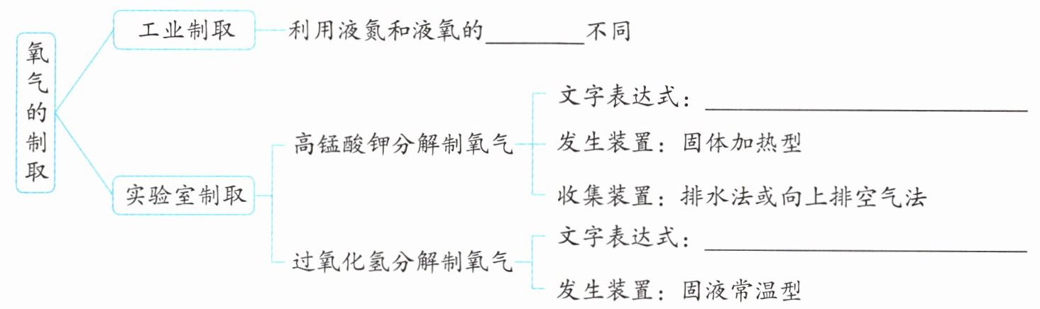 沸点 高锰酸钾$\xrightarrow{加热}$锰酸钾+二氧化锰+氧气 过氧化氢$\xrightarrow{二氧化锰}$水+氧气