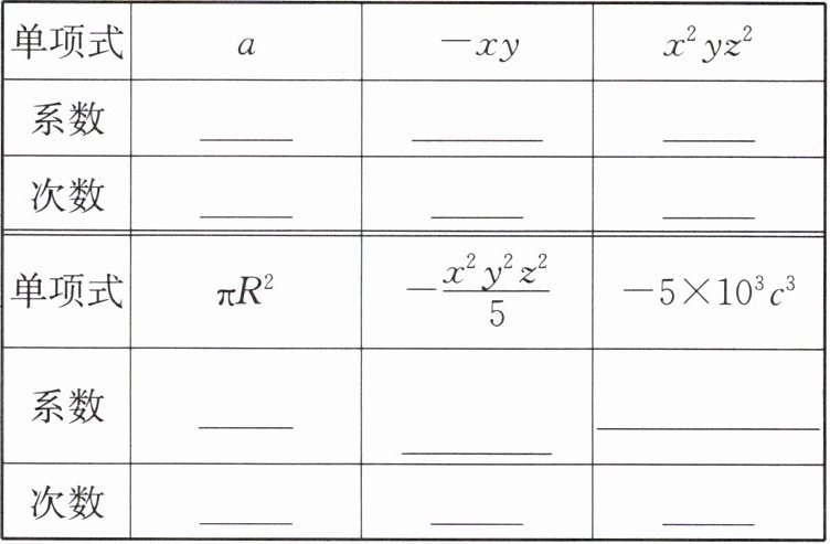 对于单项式$\pi R^{2}$,数字因数是$\pi$,所以系数是$\pi$;