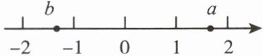 解:由数轴可知,$b$在$-2$和$-1$之间,$a$在$2$的左侧。