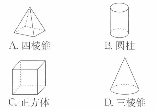 【例题】下列几种图形:①三角形;②长方形;③正方体;④圆;⑤四棱锥;⑥三棱柱.其中属于立体图形的是(