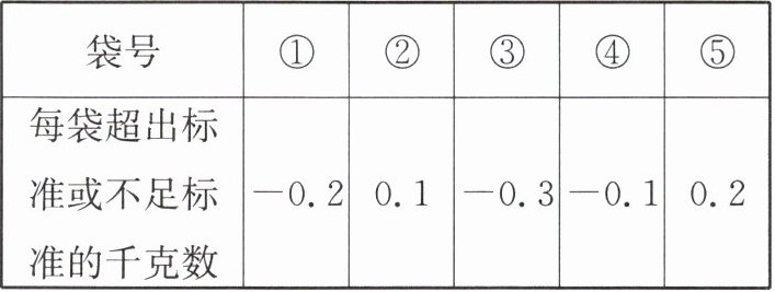 15. (应用能力)有5袋大米,以每袋25 kg为标准,超过标准的千克数记作正数,不足标准的千克数记作负数,各袋大米的千克数如下表所示.