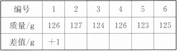 | 质量/g | 126 | 127 | 124 | 126 | 123 | 125 |