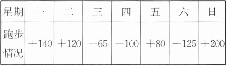 13. 为了改善青少年体质健康状况,云南省中考改革把体育成绩与语文、数学、英语成绩并列,按100分计入升学成绩. 为此,小健同学天天坚持跑步锻炼,他每天以$1000\ m$为标准,超过标准的距离记为正数,不足标准的距离记为负数,下表记录了小健同学上周的跑步情况(单位:$m$).