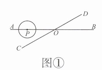 【例题2】如图①,直线$AB$,$CD交于点O$,$\angle AOC = 30^{\circ}$,半径为$1 cm的\odot P的圆心在射线OA$上,开始时$PO = 6 cm$. 如果$\odot P以1 cm/s的速度沿由点A向点B$的方向移动,那么当$\odot P的运动时间t$(单位:s)满足什么条件时,$\odot P与直线CD$相交?