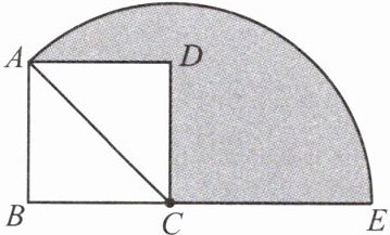 4. 如图,在正方形 $ABCD$ 中,$AB = 2\sqrt{2}$,连接 $AC$,以点 $C$ 为圆心、$AC$ 长为半径画弧,弧与 $BC$ 的延长线交于点 $E$,则图中阴影部分的面积为______。