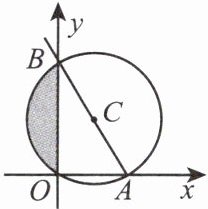 4. 如图,直线 $y = kx + b$ 经过点 $(1, \sqrt{3})$ 和点 $(-1, 3\sqrt{3})$,$A$, $B$ 是此直线与坐标轴的交点,以 $AB$ 为直径作 $\odot C$,求此圆与 $y$ 轴围成的阴影部分的面积。