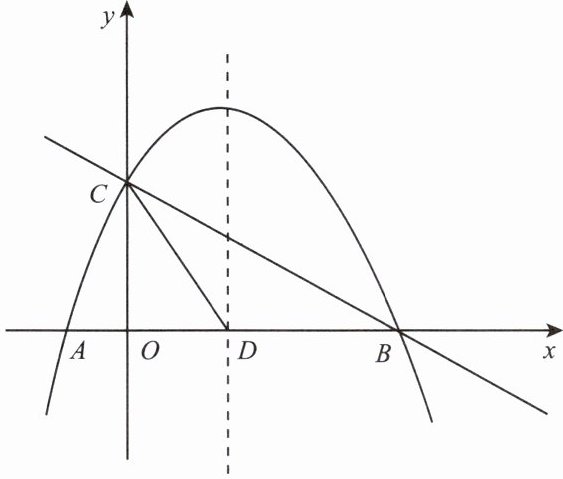 由对称轴公式$x = -\frac{b}{2a}$,对于$y = -\frac{1}{2}x^{2}+\frac{3}{2}x + 2$,$a = -\frac{1}{2}$,$b=\frac{3}{2}$,对称轴$x = -\frac{\frac{3}{2}}{2×(-\frac{1}{2})}=\frac{3}{2}$,则$D(\frac{3}{2},0)$。