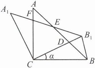 $\because\triangle ABC$绕点$C$逆时针旋转角$\alpha$得到$\triangle A_1B_1C$,