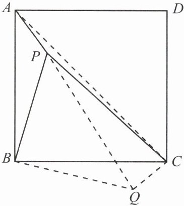 (1) 可将$\triangle ABP$绕点B顺时针旋转$90^\circ得到\triangle CBQ$,如下图,连接PQ,构成两个特殊三角形。