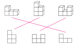 2. 下面3个立体图形,从正面分别能看到什么形状?用线连一连。