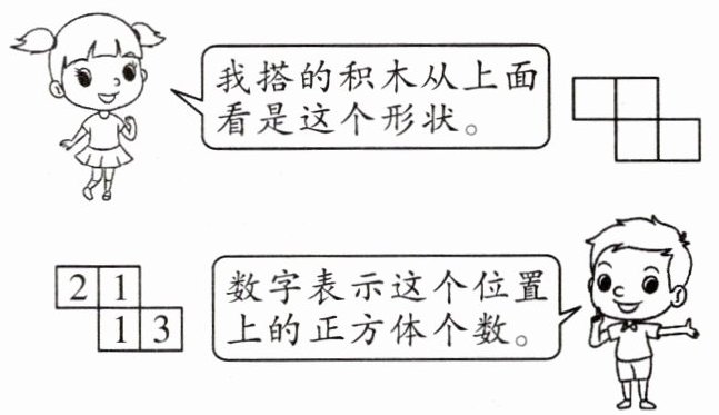 (1)一个立体图形,从三个面看到的形状如图所示。动手摆一摆,你用了几个小正方体?