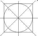 5. 在下面的正方形中画一个最大的圆,再画出这个组合图形的两条对称轴。