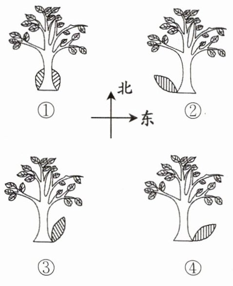 4. 下图是学校里的一棵树在一天的不同时刻被拍下的四张照片(在同一拍摄点拍摄),其所对应时间的先后顺序是怎样的?