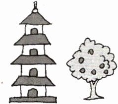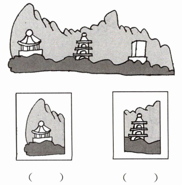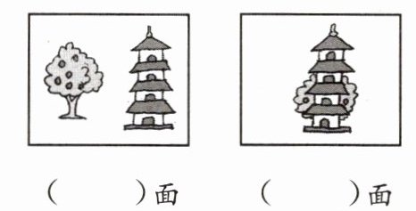 1. 明明从前、后、左、右四个位置给下面的景物拍了四张照片。
