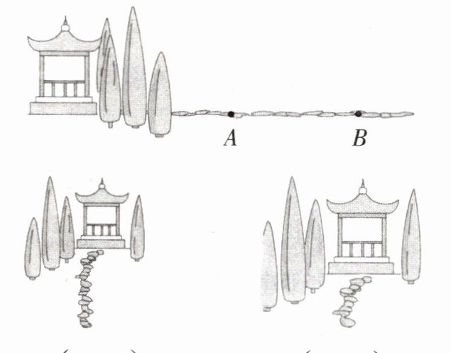 3. 下面两幅图中,哪幅图是在 A 点看到的?哪幅图是在 B 点看到的?