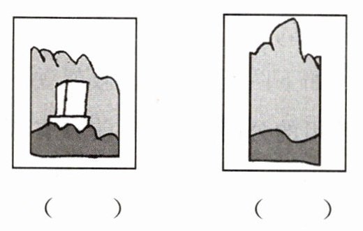 2. 天天正乘船游览(从左向右),在游览过程中他拍了四张照片。请你在四张照片下面的括号里用①②③④标出拍摄的顺序。