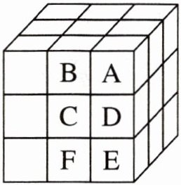 11. 有一些正方体积木,棱长都是 1 cm。把这些积木搭成如图所示的大正方体,A,B,C,D,E,F 是其中的六块积木。