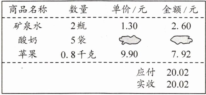 8. 超市促销,酸奶一律打九五折,下面是冬冬去超市购物的小票,你能算出一袋酸奶原来多少钱吗?