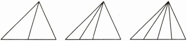 6. 如图所示,从一个三角形的顶点向对边画1条线段,新图形中有3个三角形。画2条线段,新图形中有多少个三角形?画3条线段呢?你发现了什么规律?如果画15条线段,那么新图形中有多少个三角形?