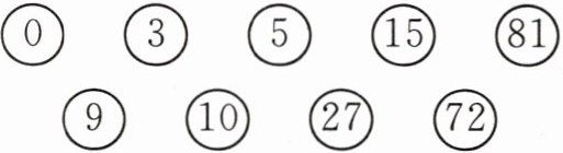 $\boxed{0}$ $\boxed{3}$ $\boxed{5}$ $\boxed{15}$ $\boxed{81}$ $\boxed{9}$ $\boxed{10}$ $\boxed{27}$ $\boxed{72}$