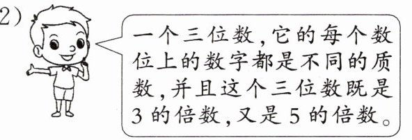 一个三位数,它的每个数位上的数字都是不同的质数,并且这个三位数既是 3 的倍数,又是 5 的倍数。