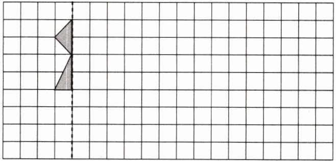 5. 以虚线为对称轴,画出下面图形的轴对称图形,再将这个轴对称图形先向右平移 8 格,再向下平移 2 格。