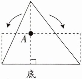4. 淘淘想用“出入相补”原理解释三角形面积的计算方法,请你结合下图帮助淘淘进行解释说明,先思考,再填空。(点$A$是三角形的高的中点)