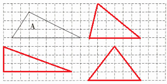 3. 在方格纸上画出 3 个形状不同且与图 A 的面积相等的三角形。