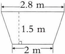 4. 如图所示,一条水渠的横截面为梯形,已知渠口宽 2.8 m,渠底宽 2 m,高是1.5 m。这条水渠横截面的面积是多少平方米?