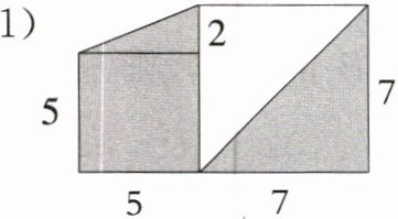 (1)7×7÷2=24.5(cm²) 5×5=25(cm²) 5×2÷2=5(cm²) 24.5+25+5=54.5(cm²)