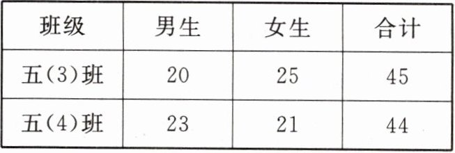 5. 下面是五(3)班和五(4)班的人数统计情况。