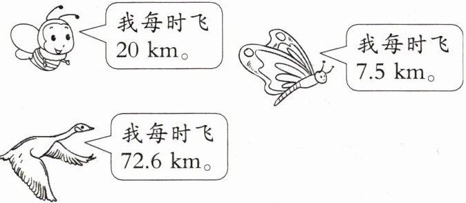 1. 提出问题:蜜蜂每小时飞行$20$千米,蝴蝶每小时飞行$7.5$千米,大雁每小时飞行$72.6$千米,大雁每小时飞行的速度比蜜蜂和蝴蝶每小时飞行速度之和多多少千米?