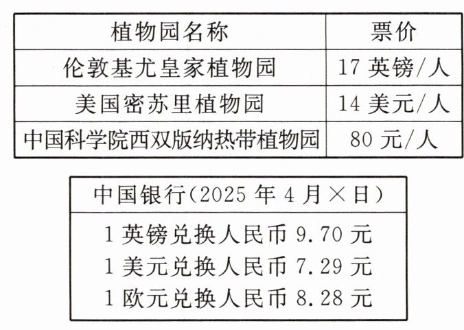 (2)美国密苏里植物园的门票价格折合人民币多少元?