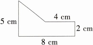 方法一:8 - 4 = 4(cm)(2 + 5)×4÷2 = 14(cm²)4×2 = 8(cm²) 14 + 8 = 22(cm²)方法二:8 - 4 = 4(cm)5×4÷2 = 10(cm²)(4 + 8)×2÷2 = 12(cm²)10 + 12 = 22(cm²)答:这个组合图形的面积是22cm²。