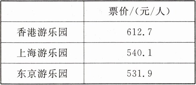 5. 冬冬在网上分别查询了香港、上海、东京三地的某游乐园以人民币计算的门票价格。