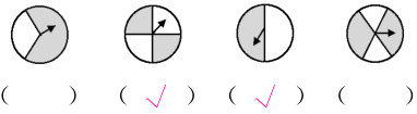 6. 小刚设计了一个转盘游戏,转到白色区域小刚赢,转到阴影区域小江赢。如果你是小江,你会选择哪个转盘使游戏公平呢?