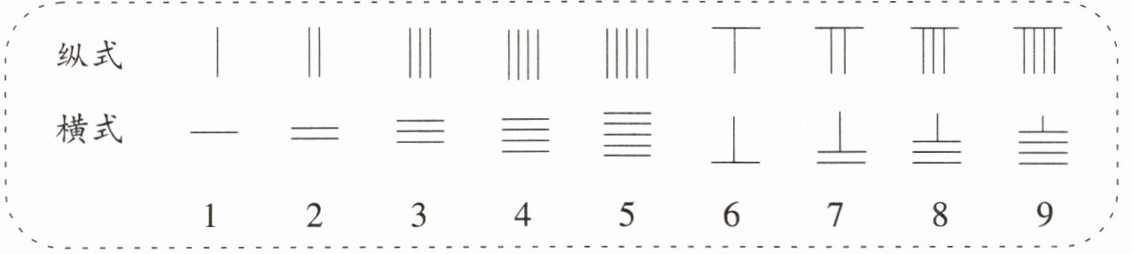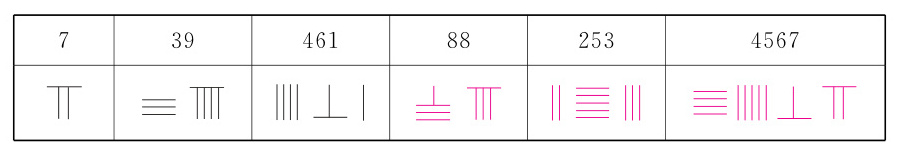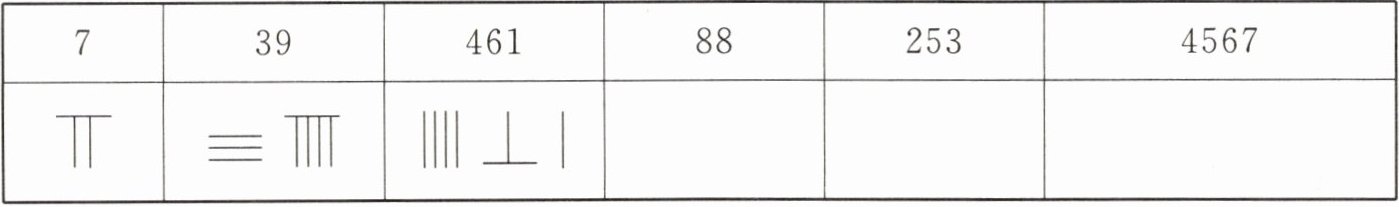 请你仿照示例,尝试用算筹表示下表中的数。