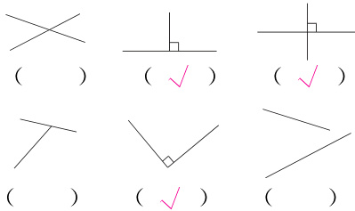 1. 下面各组线条中,哪些是互相垂直的?在括号里画“√”。