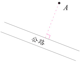 5. 小兰要从点 $ A $ 走向公路,她怎样走路线最短?请在图中画出来。