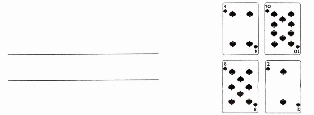 10. $24$ 点扑克牌游戏是一种经典的纸牌益智游戏。游戏使用一副牌,去掉大小王后剩下 $52$ 张。玩家任意抽取 $4$ 张牌(称为牌组),可通过加、减、乘、除四种运算方式(可添括号),把牌面上的数算成 $24$。每张牌必须用且只能用一次。下面是本次游戏抽取的 $4$ 张扑克牌,你能用两种方法得到 $24$ 吗?请把算式写在横线上。
