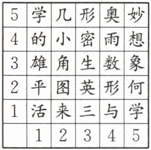 6. 小羽在课余时间喜欢阅读,妈妈给她买了许多课外读物,如《数学思维》《三国演义》等。周末,妈妈又给她买了一本新书,书名中的每个字用数对表示分别是$(4,3)$,$(5,1)$,$(4,1)$,$(3,3)$,$(1,1)$,这本书是(