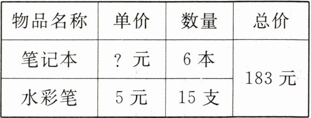 2. 根据下表中的信息,你能算出每本笔记本多少元吗?