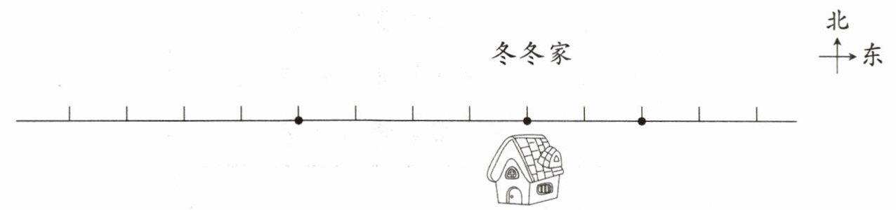 2. 下图每格表示 100 米,冬冬刚开始的位置在自己家。如果冬冬从家向东走 200 米表示为+200 米,那么他从家向西走 400 米可以表示为(