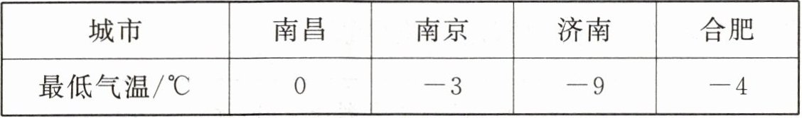 1. 下面是我国四个城市 2025 年 1 月份某天的最低气温情况统计表,其中当天最冷的城市是(