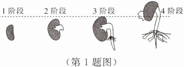 1. 下图表示菜豆种子的萌发过程,下列有关叙述错误的是( )