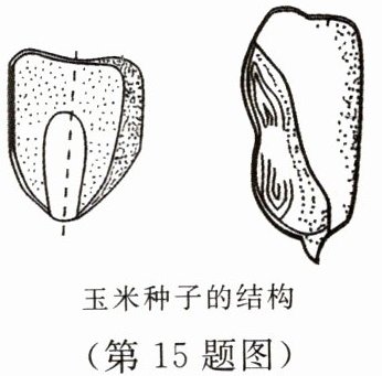 15. 菜豆种子和玉米种子的结构示意图如下,请据图完成下列习题。