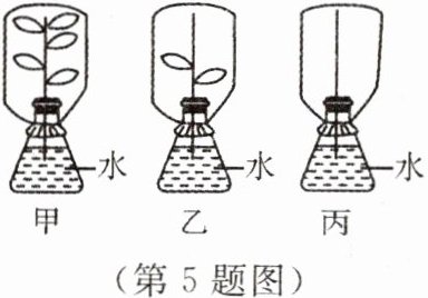 5. 为探究绿色植物的蒸腾作用,将下图所示三个实验装置(塑料袋都透明)放在相同的环境中,24小时后观察实验现象。下列有关该实验的分析错误的是( )