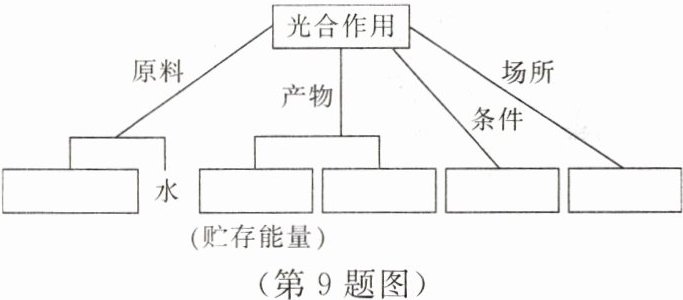 9. 下图为某同学制作的绿色植物光合作用概念图,请结合所学知识完成填空。
